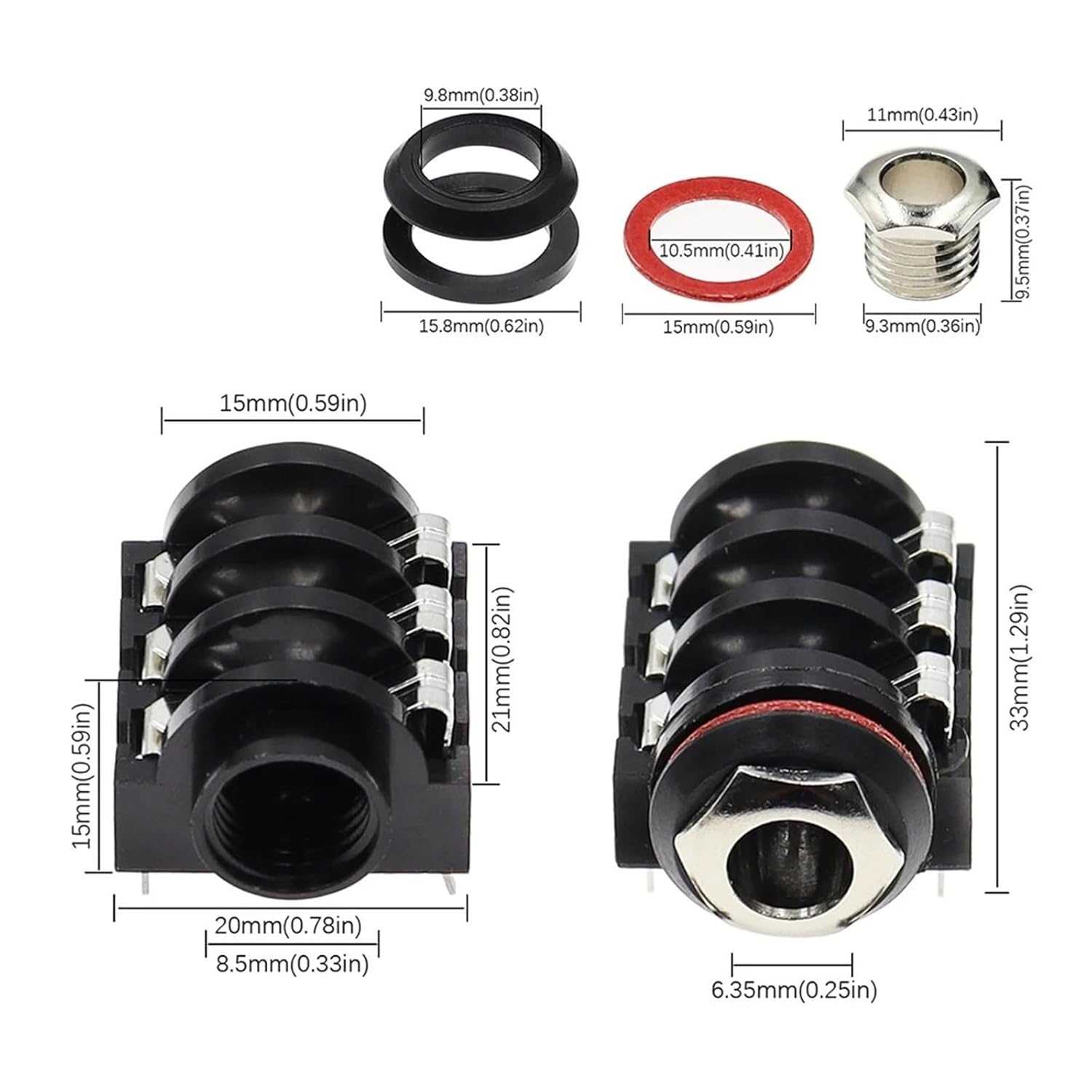 Relays100PCS 1/4" 6.35 mm Stereo Audio Socket Jack Connector 6.5 mm Solder Right Angle Tip Ring Sleeve Model Number : 6.35 Headphone socketVoltage : 36 V