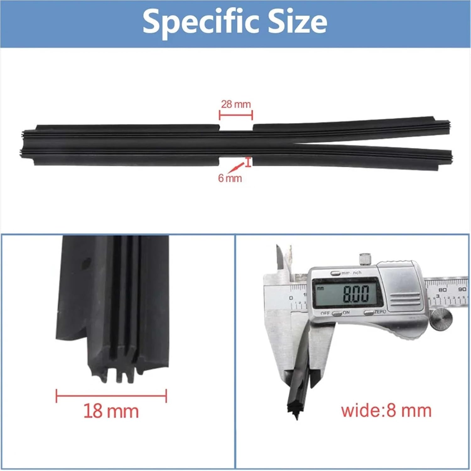WipersWidth:8mm Height:18mmHign-concerned Chemical : NoneItem Weight : 80gItem Height : 1.8cmItem Width : 0.8cmModel Name : BR-FLJ001Material : RubberColor : BlackSize : 14" 16" 17" 18" 19" 20" 21" 22" 24" 26" 28"Width : 8mmHeight : 18mm