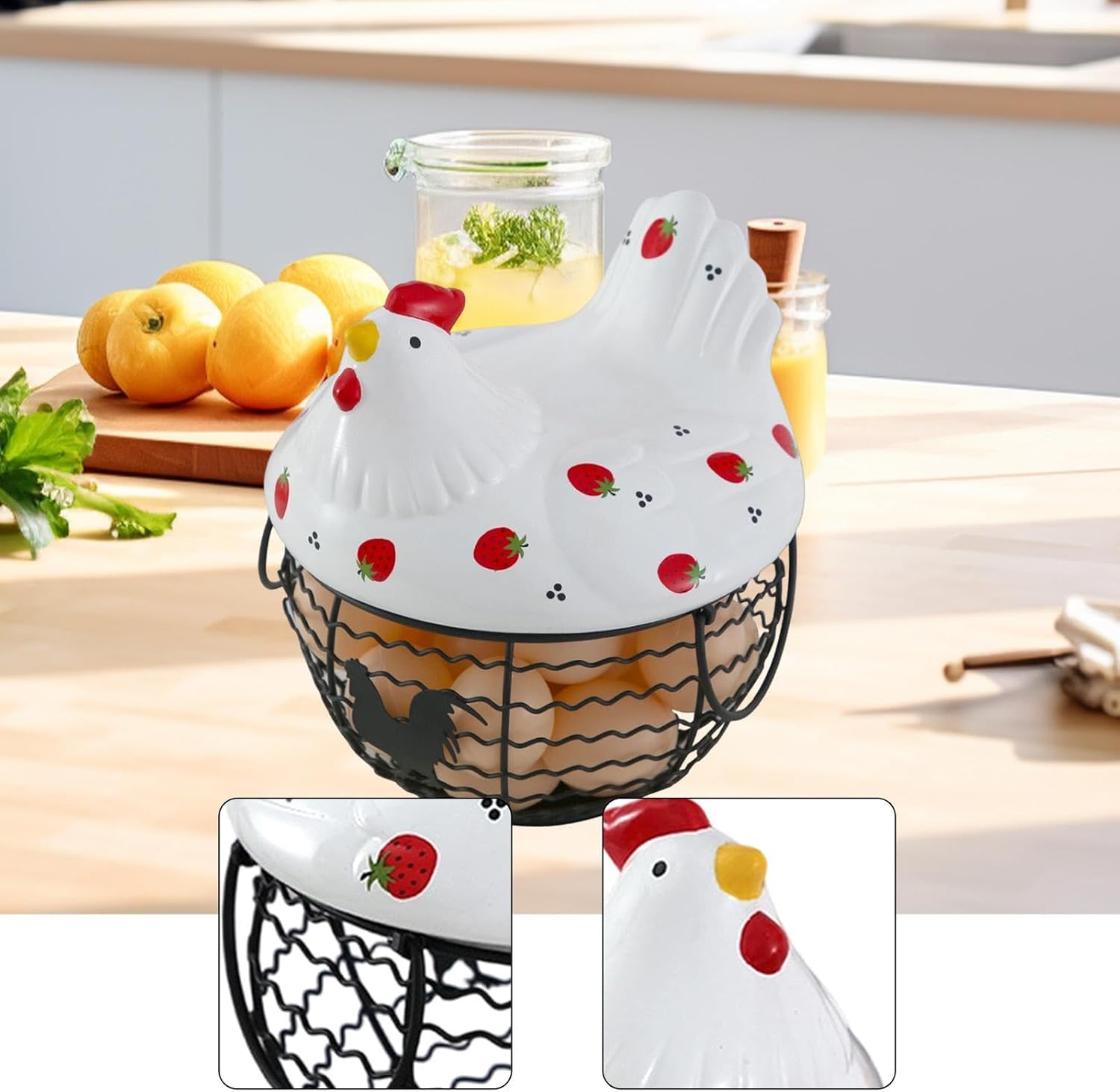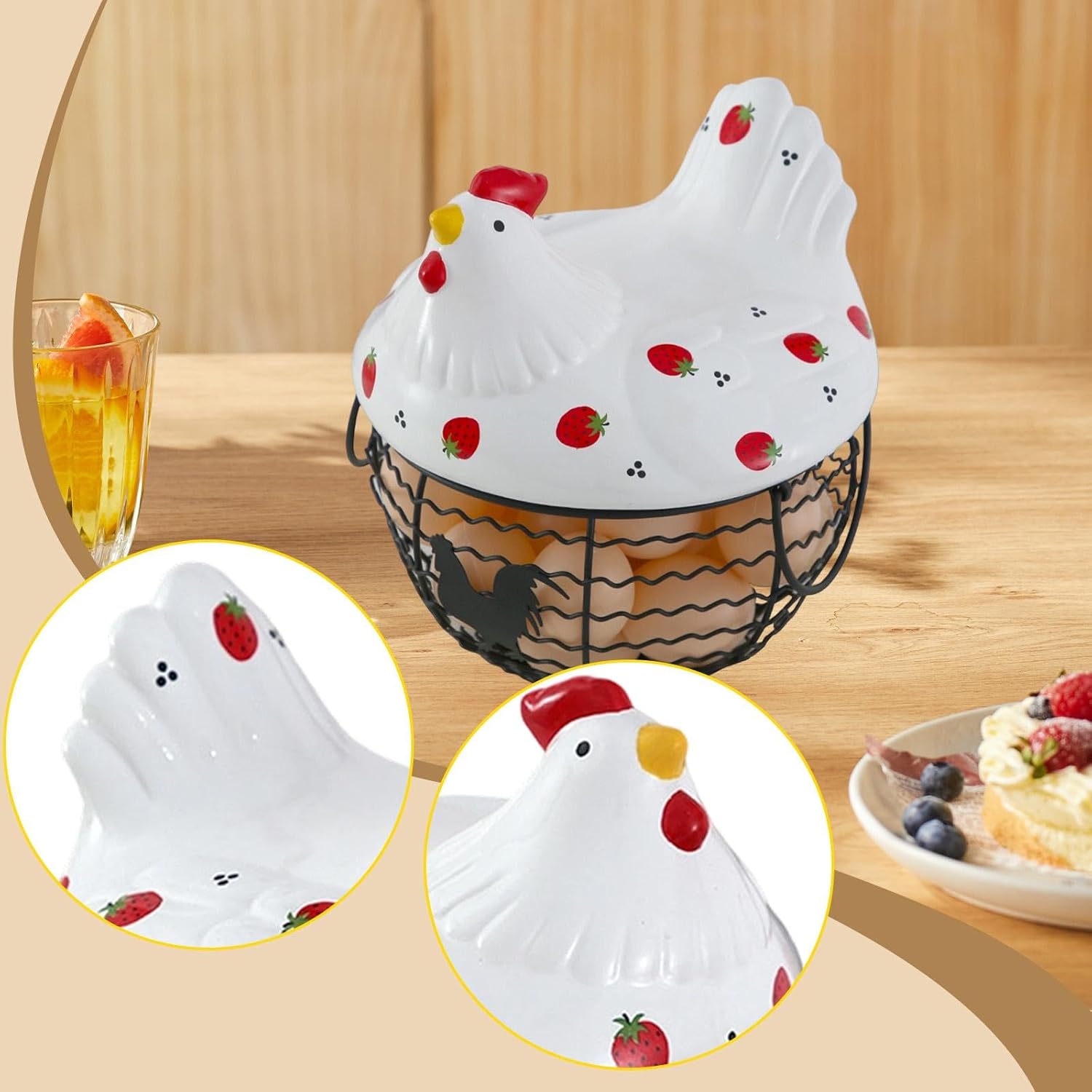 Description: - 【Creative Design】Features an adorable mother hen shape, adding a playful decorative touch to your kitchen while keeping neatly organized - 【Material】Crafted from sturdy iron and ceramic for long term durability and reliable support, great for holding eggs, fruits, snacks, and more - 【Spacious Capacity】Generously sized interior easily stores eggs, garlic, potatoes, fruits or assorted kitchen items, ensuring convenient access and ample storage. - 【Decorative Lid】Comes with a charming chicken-shaped lid that combines creativity with visual to brighten your countertop. - 【Easy Access】The metal basket design allows you to quickly grab what you need and helps maintain a or living room space.Specification: - Material: Ceramic, IronSize Chart:19.5cmx22cm/7.68inchx8.66inchPackage Includes:1 Chicken Egg Basket