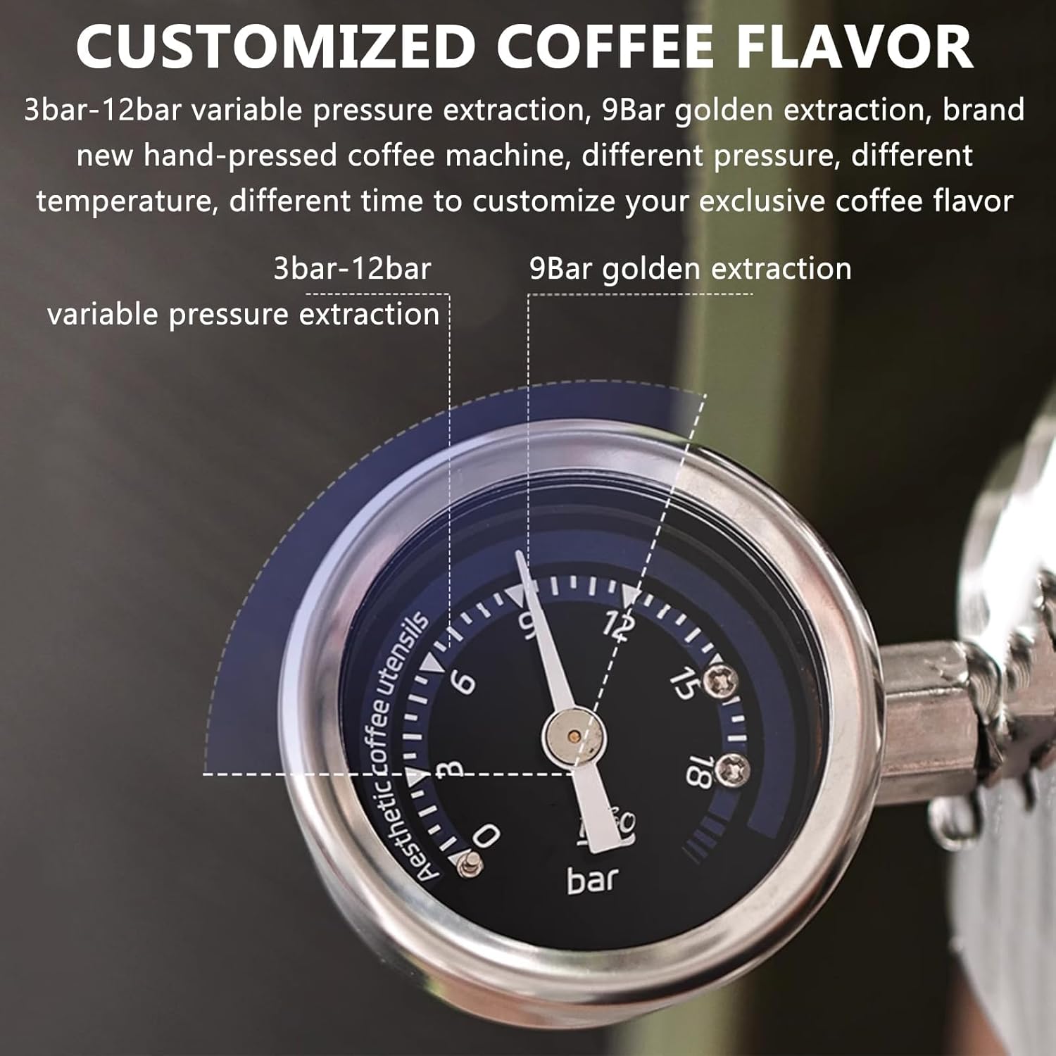 Product specifications: Product name: hand-pressed coffee machine Optimal water volume in water tank: 80ml Material: 304 stainless steel + aluminum alloy + walnut + silicone Extraction temperature: recommended 92-98°C Extraction pressure: 0Bar-12Bar (recommended 9Bar) Weight: about 5.7kg Package includes: Hand-pressed coffee machine*1 Notes: ①Please place this product on a flat surface for use ②The maximum extraction pressure of this product 12bar, please do not exceed this pressure value to avoid damage to product components ③The maximum capacity of the water tank of this product is 100ml, and the best amount of water for extraction is the middle horizontal line (about 80ml) ④Please use a professional temperature-controlled pot or a long-mouthed pot to add water slowly to avoid hot water falling and causing scalding ⑤Please watch the relevant operation tutorials before operating the coffee machine (children are not recommended to operate this device)