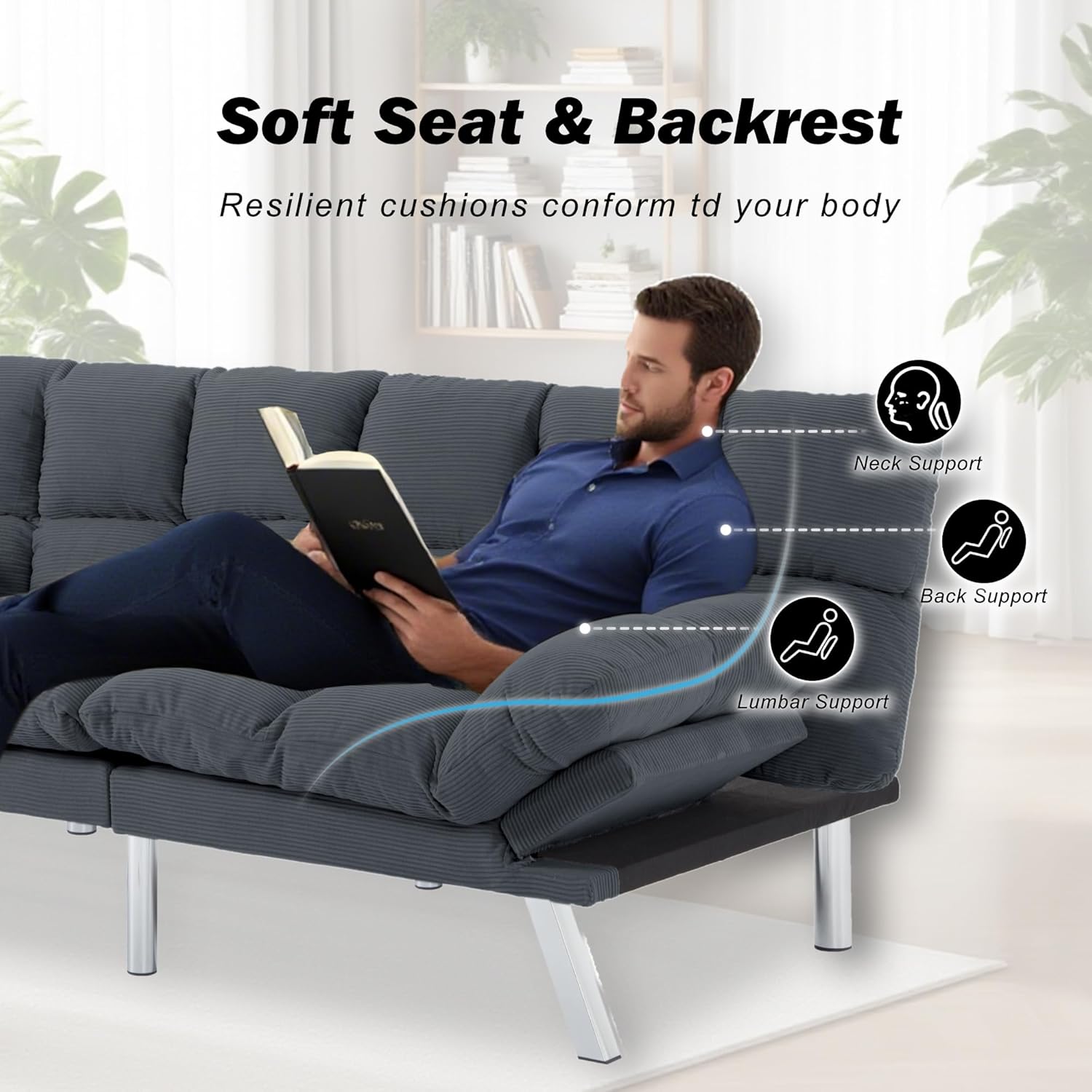 Anwick living room sofa bed that transforms,simplifying life with design and enveloping everyday life in comfort It fashion,function and comfort in futons designed for the pursuit of high quality of life and perfect space utilization,In addition to the above features,our sofas have surprising details.... ღ When unfolded,it is a bed;when folded,it is a view.quickly converts to 4 angles,allowing you to read recline and napping ღ Adjustable Armrests,provides comfortable support for the head and arms ღ Upgraded deluxe material with thicker upholstery,like a cozy cloud ღ Peace of mind,the bottom is supported by thickened chrome legs,which can keep the loveseat stable and durable ღ Friendly experience: we have a perfect after-sales service system to ensure fast assembly Sofa Dimensions:67"x33.9"x29.5" Bed:68"x33.9"x40.5" Upholstery Fabric Type:Corduroy Material:Linen+Plywood+Foam Legs:Rubber Wood Overall Weight:73lbs Weight Capacity:500lbs Fill Material:Foam Seat Fill Material:Foam Recommended uses for Product:living room,dorm,apartment,bedroom or home office