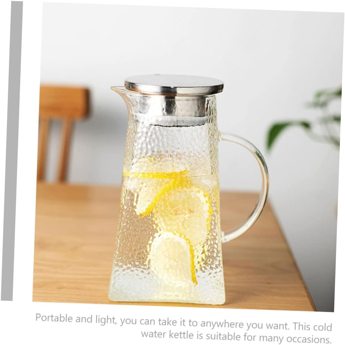 Package List 1 Pitcher Characteristics - Material: Glass Pitcher - Capacity: 1.8L Glass Water Jug - Excellent workmanship and fine details its popularity and durability Household Water Storage Kettle. - The kettle is beautiful and can be with other kitchen utensils in your house Hammer Pattern Water Pitcher. - It adopted with glass materials, and , it can be used for a long time Ice Water Container. - Suitable for holding water, juice, tea, milk, beverages, scented tea, ice water, beer, etc Portable Cold Water Kettle. - It is family daily use and entertaining guests, or even others Kitchen Cold Water Kettle.Goods InformationGlass Pitcher with Lid This is an elegant and pretty water jug, which is and made of .Household Glass Pitcher It has a visible transparent appearance, making people know what is inside at once.Pitcher Simple appearance makes it easier to clean.Restaurant Juice Container Suitable for drinking water, tea, juice and other cold drinks